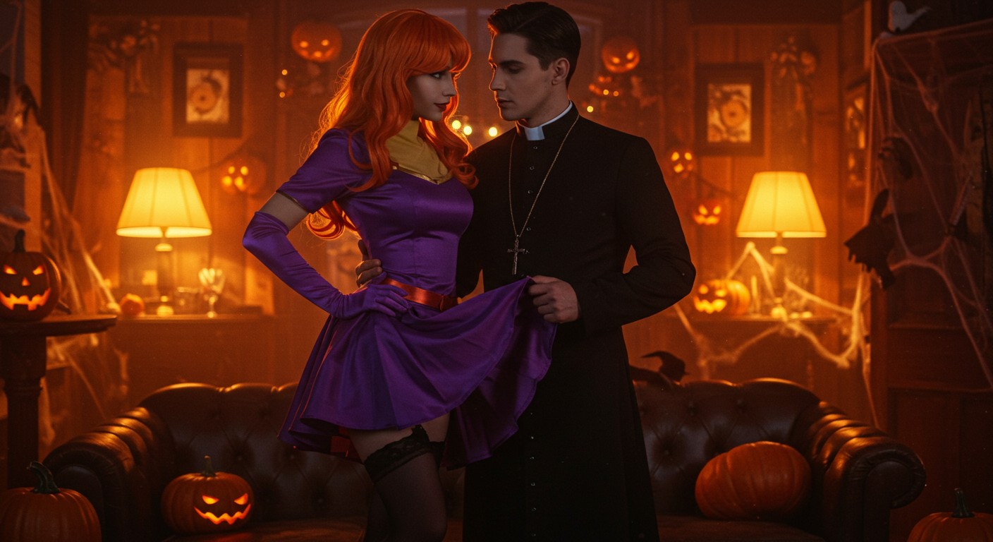 The setup alone is enough to hook you. Victoria Malfoy, channeling Scooby-Doo’s Daphne in a tight purple dress, lounges on a couch, all curves and confidence. In walks Chad Alva, rocking a priest outfit that’s more naughty than holy. The twist? He clocks her as his high school tormentor, while she plays coy, claiming amnesia. It’s a power dynamic that could’ve fizzled, but their banter crackles, setting the stage for what’s to come.